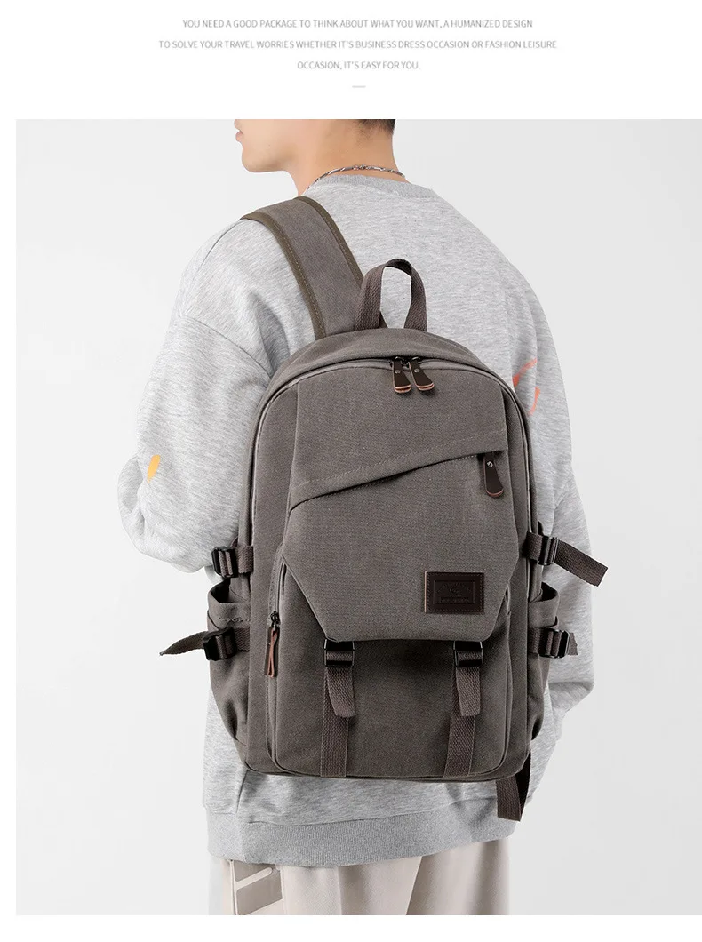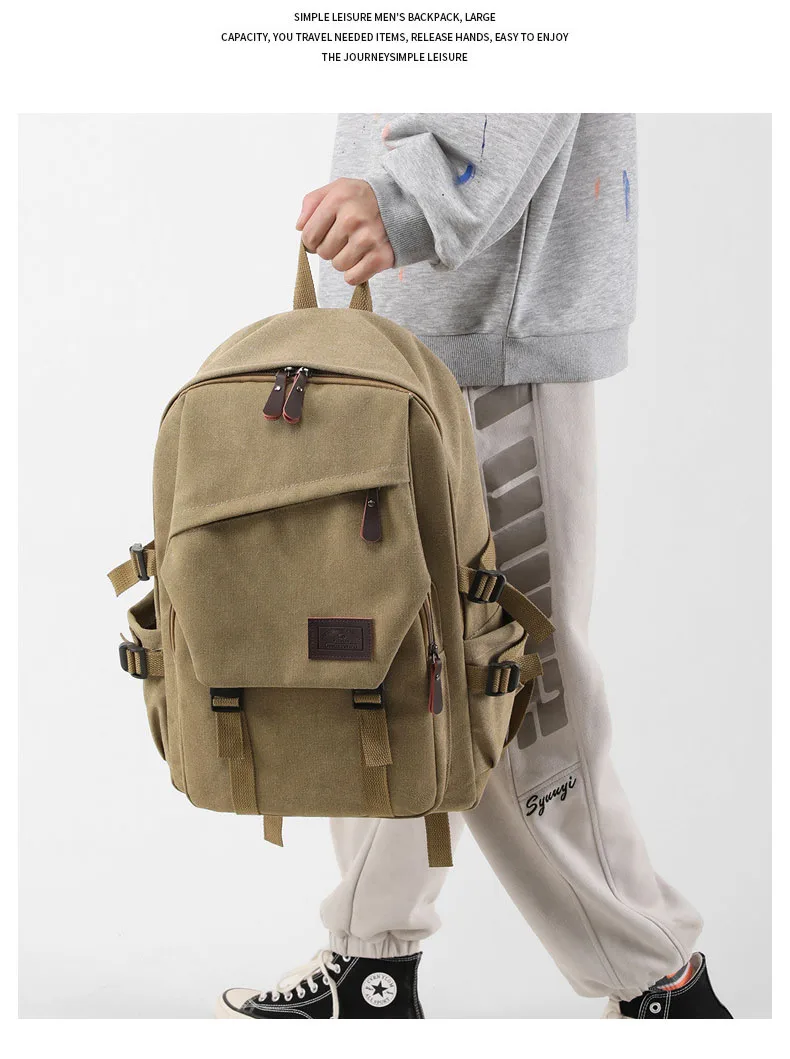 Olylan New Canvas Backpack Men's Backpack High Capacity Student backpack Commuter backpack 15.6-inch Computer Bag