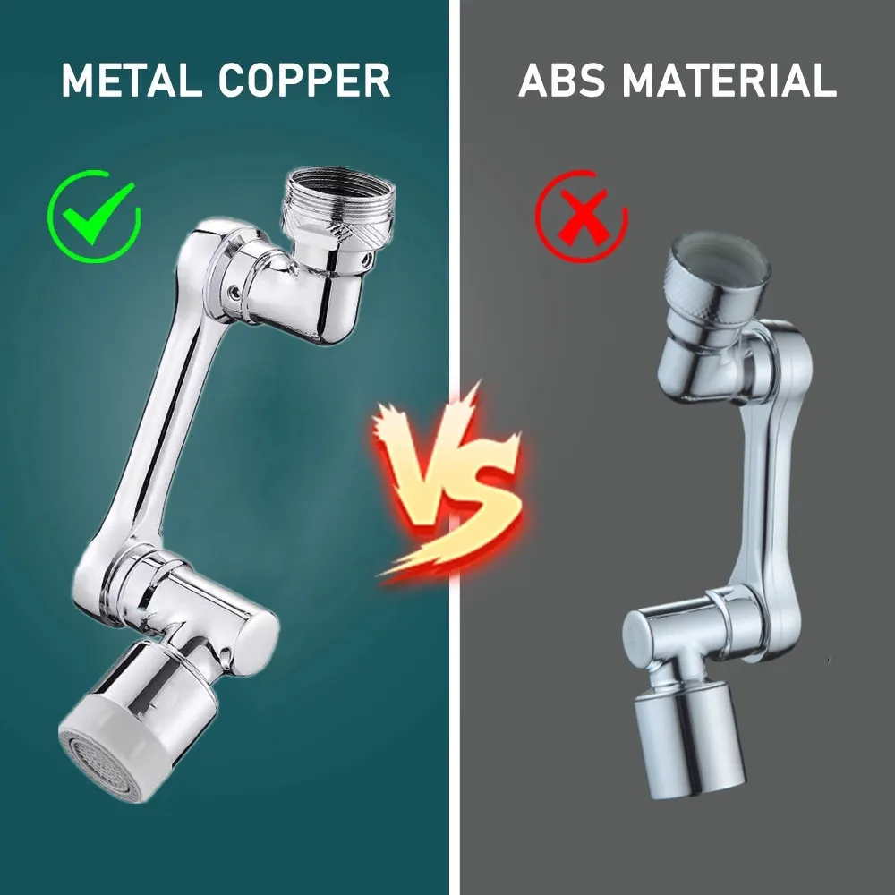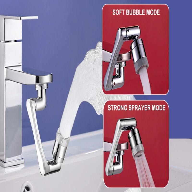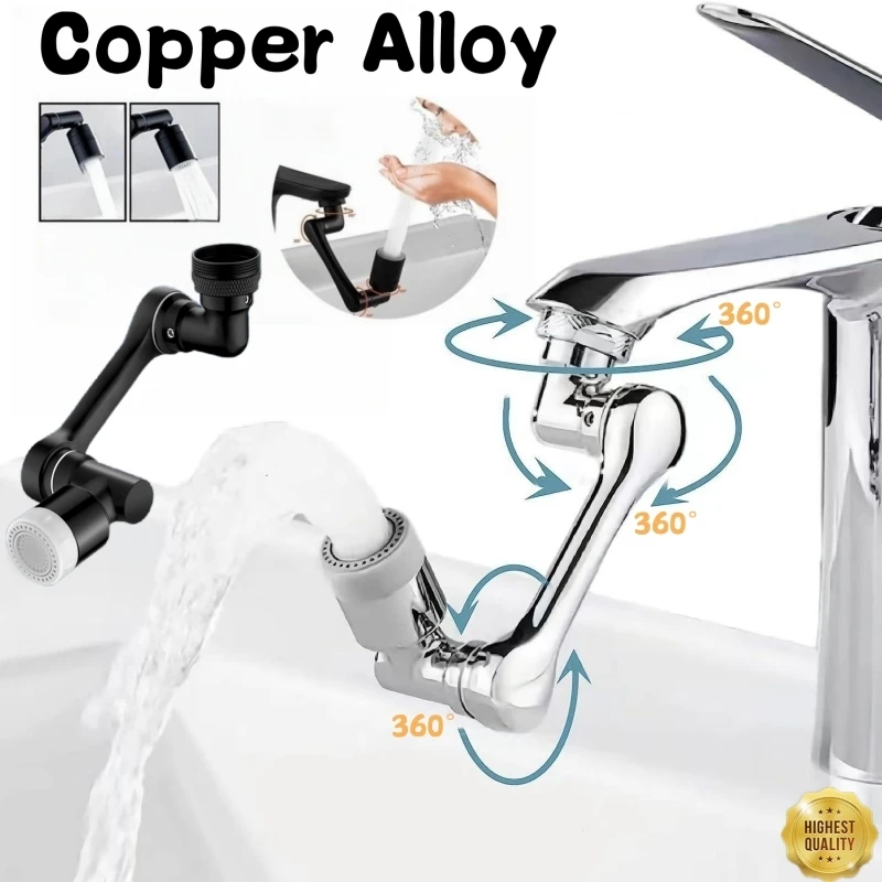 Copper Metal Universal 1080° Rotation Faucet Extender Dual Mode Sprayer Head Bubbler Splash Aerator for Kitchen Robot Arm Tap